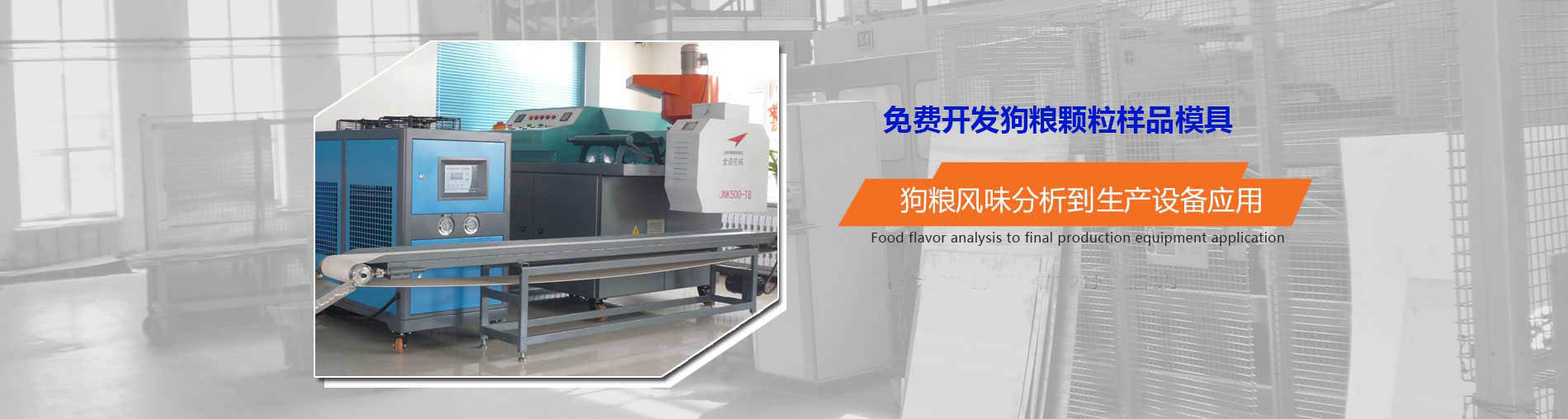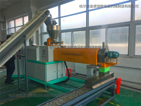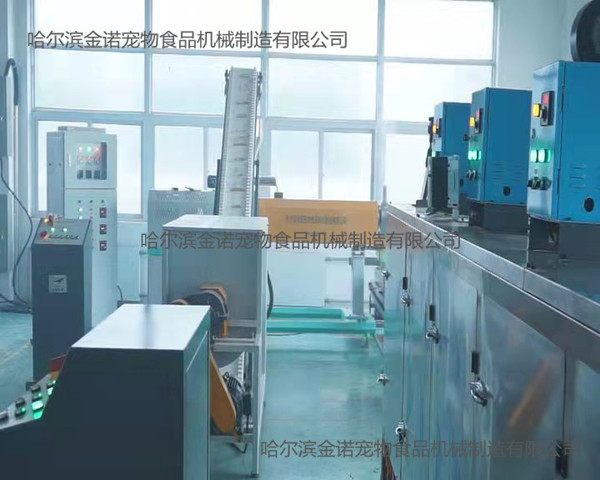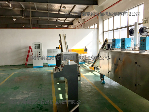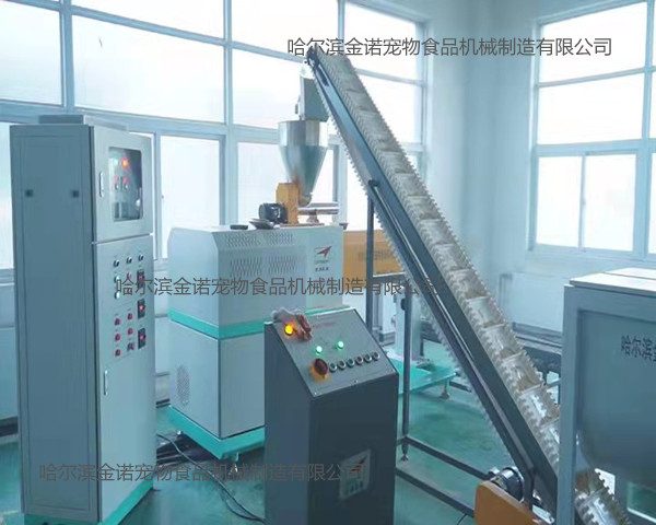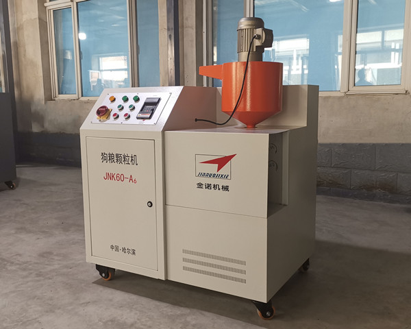 狗糧加工設備JNK200-T5M:1。JNK200-T5M型狗糧加工設備安裝方便、出廠已經試機,狗糧機切刀采用直角切刀技術,調試簡單;2。狗糧設備的主軸和切刀小軸均可隨時注入耐高溫潤滑脂,延長狗糧機的軸承使用壽命;3。JNK200-T5M狗糧設備每小時生產狗糧顆粒200公斤。